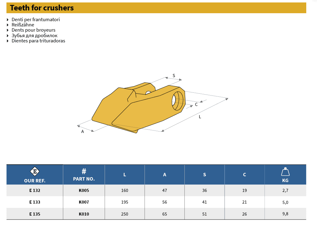 Tooth for crusher